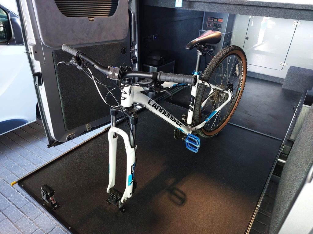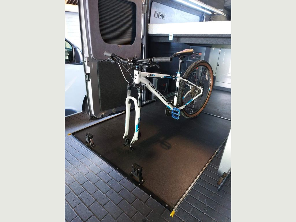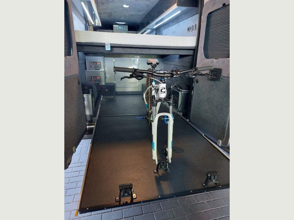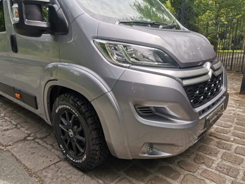 A Citroen conversion with the benefit of a garage which has an inbuilt sliding bicycle rack for 3 bikes which is perfect for the those travels, boasting a sensational spec with Multifunction steering wheel, cruise control, electric windows, electric mirror adjust, air/con, FM, AM radio with DAB digital radio, media, USB, Bluetooth audio streaming with Bluetooth telephone prep, sat nav, ASR, pdc, remote central locking, Avtex TV, Dometic fridge, x2 gas hobs, sink with running water, Dometic grill, 2x Max X air with remote, LED interior lighting, electric hook up with 4 x mains plugs, 3x 12v sockets, 3x USB sockets, fixed double bed and pull out bed, rear blinds, diesel heater, roof Solar panels with 4x Jackery explorer 1000, 16” MSW alloys with BF Goodrich All-Terrain tyres.