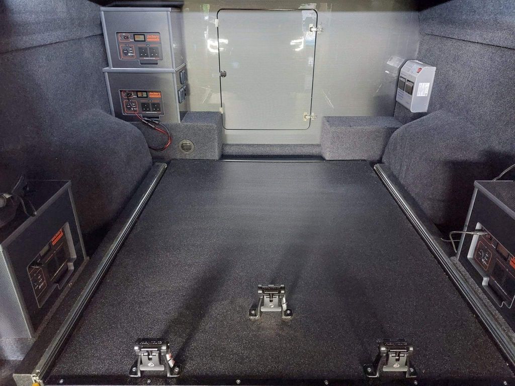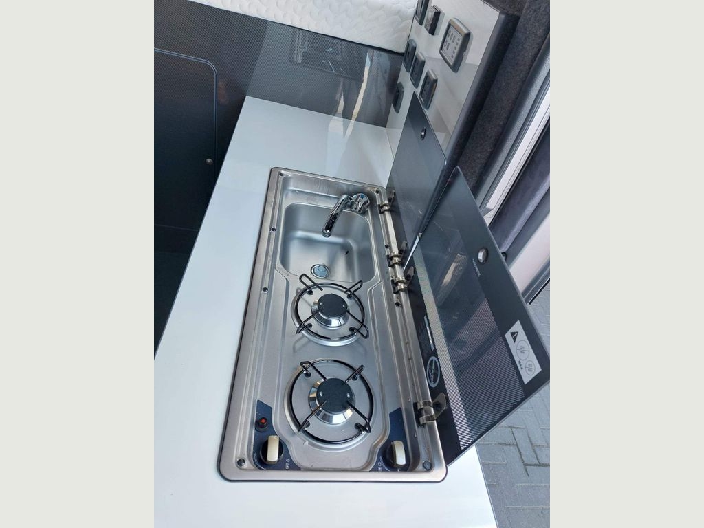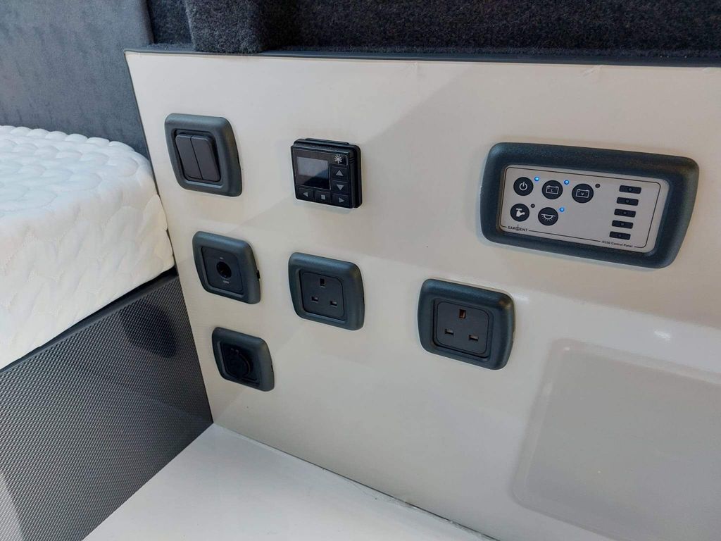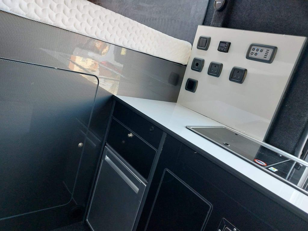 A Citroen conversion with the benefit of a garage which has an inbuilt sliding bicycle rack for 3 bikes which is perfect for the those travels, boasting a sensational spec with Multifunction steering wheel, cruise control, electric windows, electric mirror adjust, air/con, FM, AM radio with DAB digital radio, media, USB, Bluetooth audio streaming with Bluetooth telephone prep, sat nav, ASR, pdc, remote central locking, Avtex TV, Dometic fridge, x2 gas hobs, sink with running water, Dometic grill, 2x Max X air with remote, LED interior lighting, electric hook up with 4 x mains plugs, 3x 12v sockets, 3x USB sockets, fixed double bed and pull out bed, rear blinds, diesel heater, roof Solar panels with 4x Jackery explorer 1000, 16” MSW alloys with BF Goodrich All-Terrain tyres.