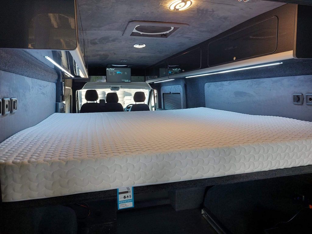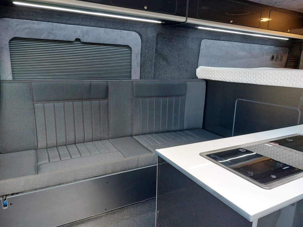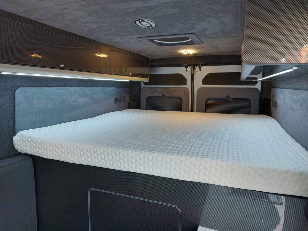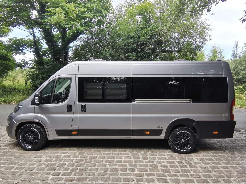 This camper van sleeps 4 adults and will also travel 3 people. This new 2020 layout from Olbel is built for the off road family life, offering a fixed French-style bed to the rear, plus daytime seating that converts to a further double bed at night, creating a comfortable 4 berth camper van.